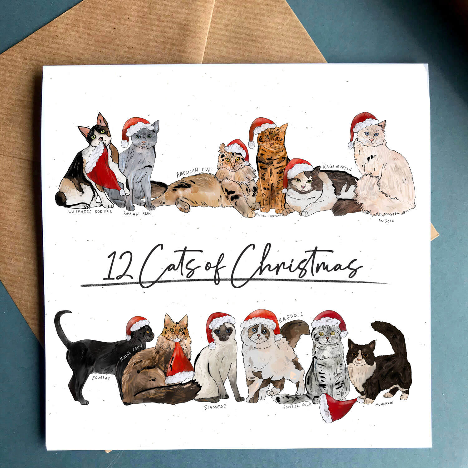 12 Cats of Christmas greetings card. Beautifully designed by local Stamford artist Portia Graves. Printed on high quality 300gsm recycled card.