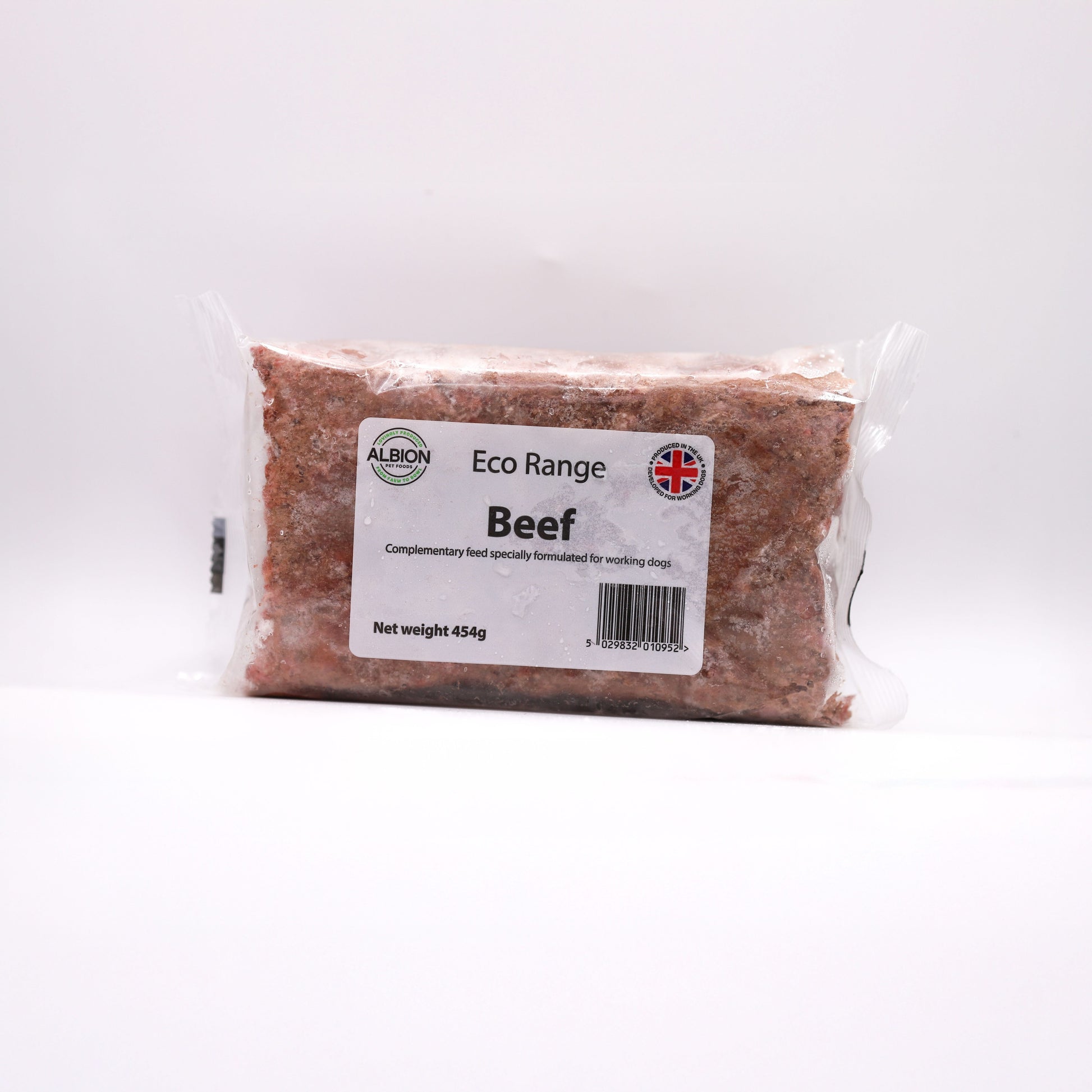 Eco Beef Mince is a complementary feed, ideal for working dogs. Perfect for combining with offal, fruits, and vegetables to create a balanced raw meal. This mince has a slightly chunkier texture, providing added variety to the diet.