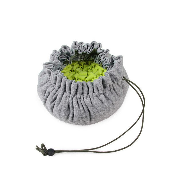 • Fabric folds where treats or kibbles can be hidden,slow down feeding, and providing good eating habits