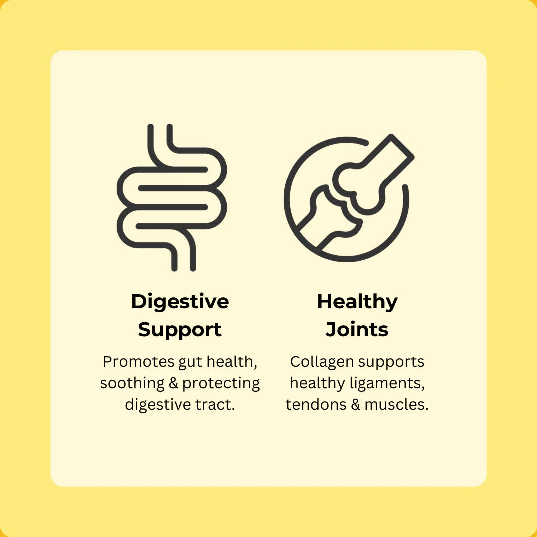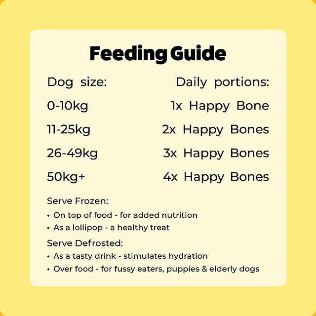 Happy Bones are packed with nutrients and compounds to support healthy joints, digestion and immune health, making them the ideal bone broth supplement for dogs.