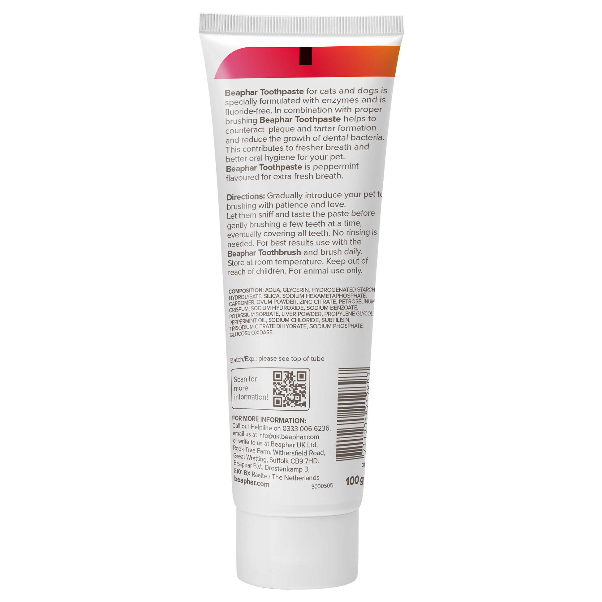 Beaphar Toothpaste for cats and dogs is specially formulated with enzymes and is fluoride-free.