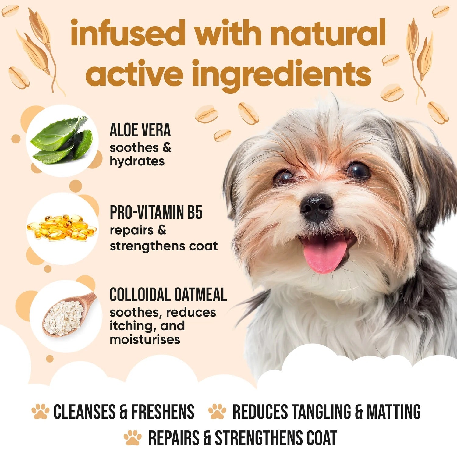 Buddycare’s Oatmeal Dog Shampoo is specially formulated to soothe skin and give a layer of protection from harmful irritants. The colloidal oatmeal also locks in moisture giving your dog’s skin a chance to rehydrate. This shampoo uses a gentle surfactant-based system, just like the ones found in baby products, to ensure a soothing and enjoyable experience for your pet. Buddycare shampoos are also completely free from parabens, sulphate, SLS and SLES. SLS may be cheap, but it can irritate the skin and cause itchiness. With Buddycare, you can rest assured that your pet’s skin will stay happy and itch-free.