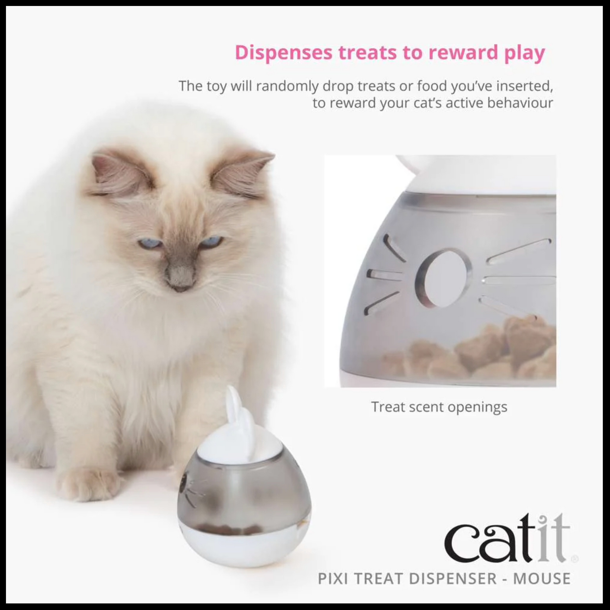 Play, pounce, and snack! This treat dispensing mouse wobbles and rolls as your cat bats it around, releasing tasty treats for hours of fun. Keep your cat entertained, active, and rewarded with this adorable, wobbling toy which turns playtime into a tasty challenge! The weighted base keeps the toy upright for endless swatting fun, while the adjustable opening lets you control treat flow and difficulty. It’s perfect for encouraging your cat’s natural hunting instincts and slowing down treat time. Compatible with most dry food or treats up to 9mm in diameter, this treat-dispensing toy keeps your cat stimulated both mentally and physically.