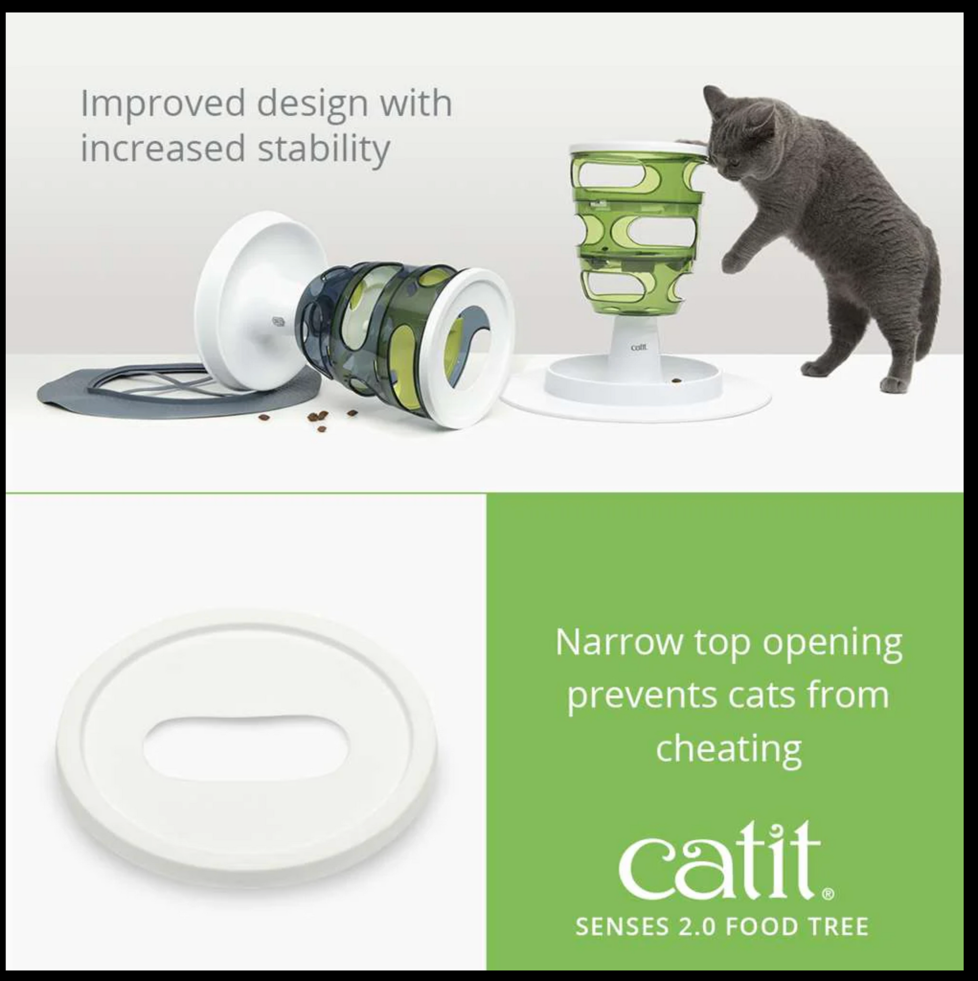 - Stable, cat-proof design – New and improved with a sturdier base to withstand playful swipes.
