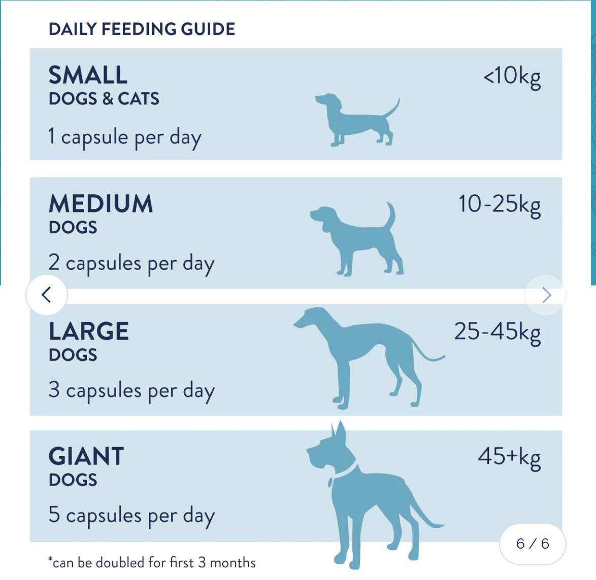 1 capsule per 10kgs bodyweight daily. Safe during pregnancy and lactation. Can be given in conjunction with any medication. Suitable from 8 weeks.
