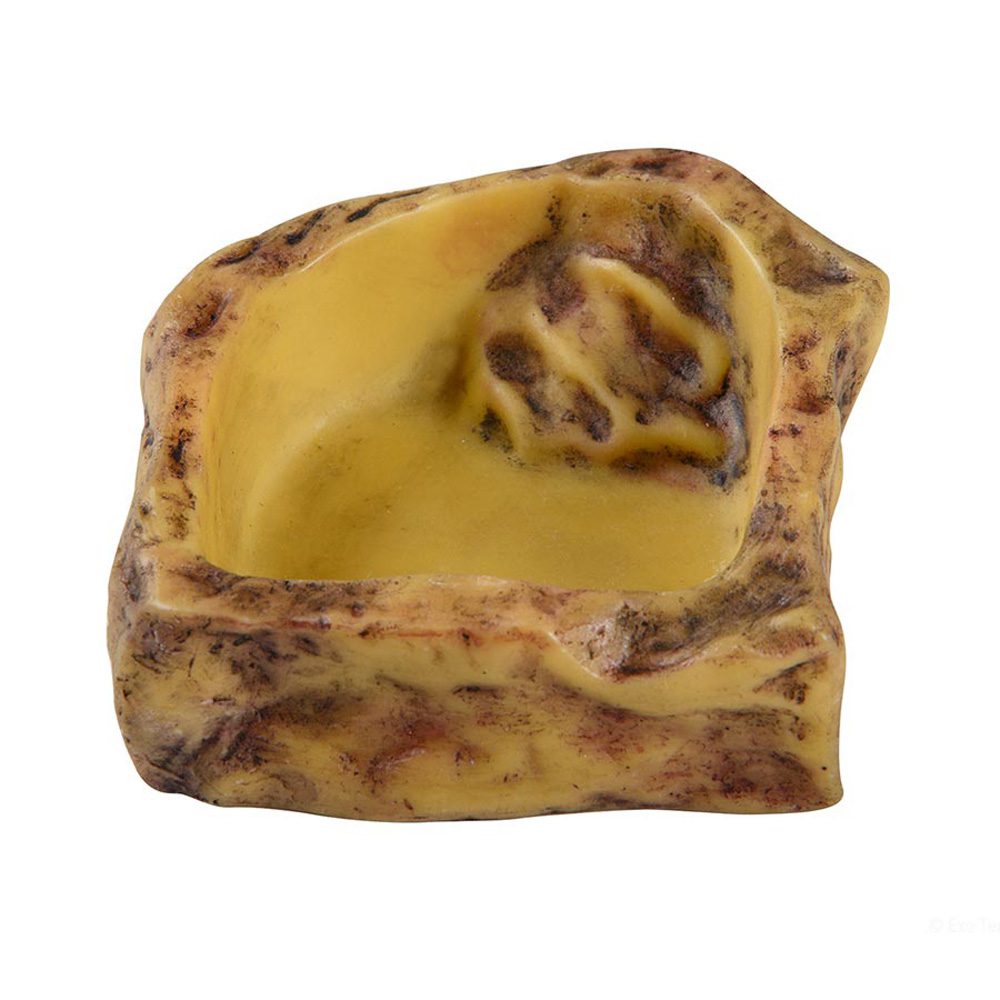 Exo terra’s Water Dishes have a very natural and realistic rock finish on the outside and a smooth non-pitted surface on the inside. The bowls are coated to prevent the development of harmful bacteria and make it easy to clean. The neutral natural colour allows easy integration in desert, tropical or any type of terrarium. Smaller reptiles, amphibians and insects can easily escape out of the Water Dish by the ‘safety steps’ inside the bowl to prevent drowning.