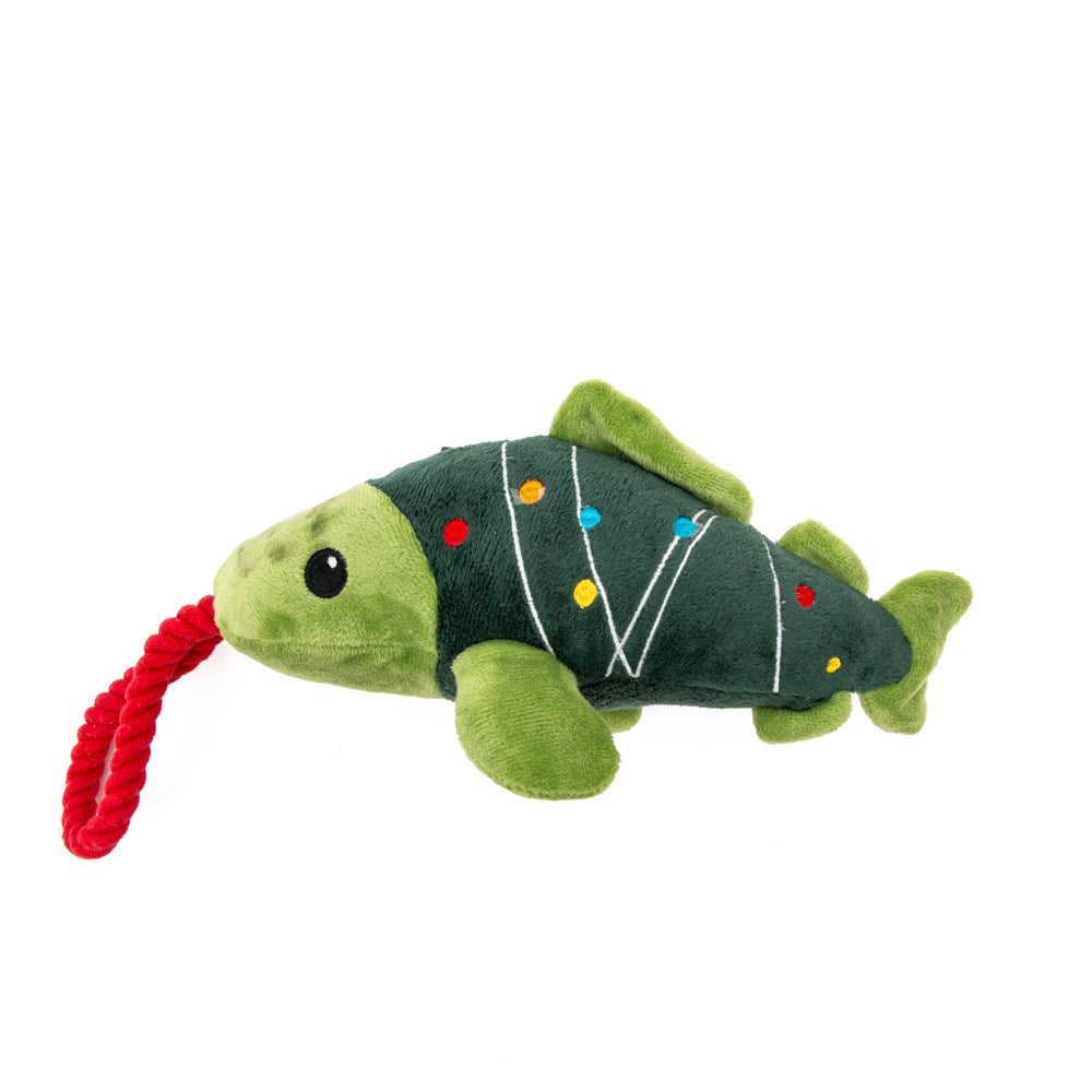 Festive Fish with a plastic squeaker in the body and rope tug on the end. This Christmas toy is perfect for interactive fun. The soft but strong materials make the range ideal for soft play or reward training. The toys are double-lined and stitched, for extra durability. Perfect for puppies to play with as well as for dogs who enjoy soft play.