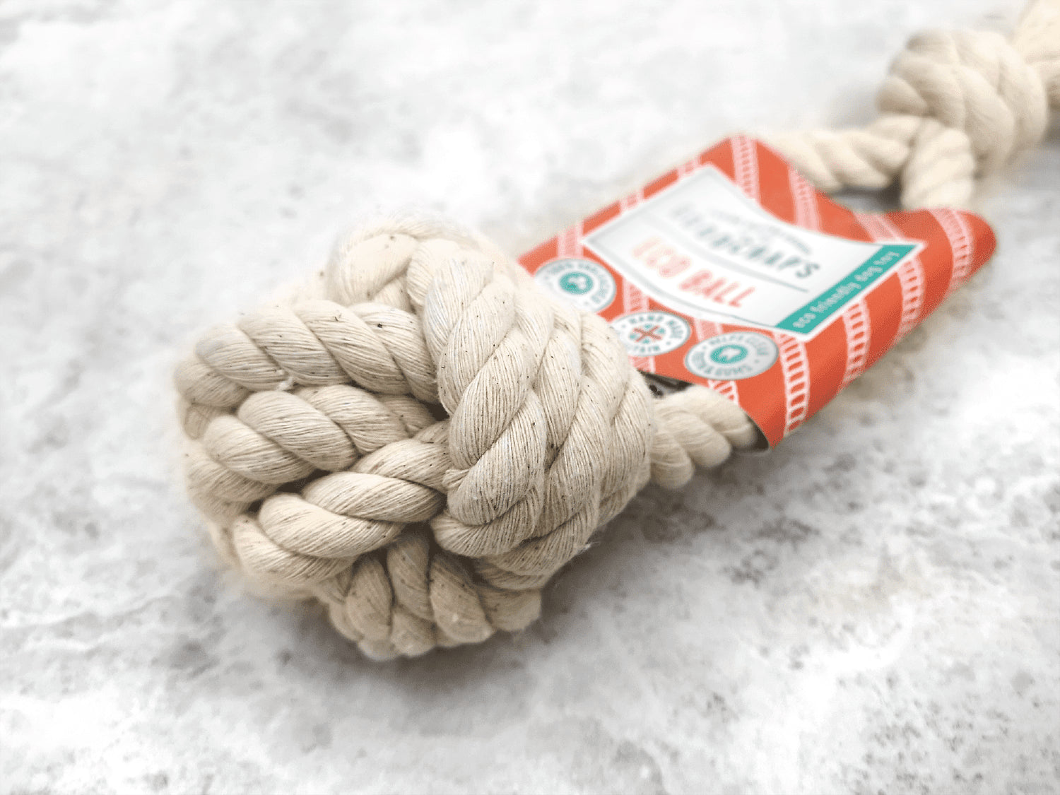 A more eco-friendly alternative to tennis balls! This natural and hand made rope toy for dogs is made from 100% unbleached cotton, this helps it retain some of its natural strength meaning it can last longer than your average rope toy.