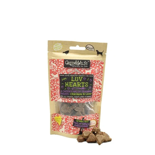 Baked in the rolling hills of England, these tasty little Love Heart Treats are the perfect way to show your dog some love.
