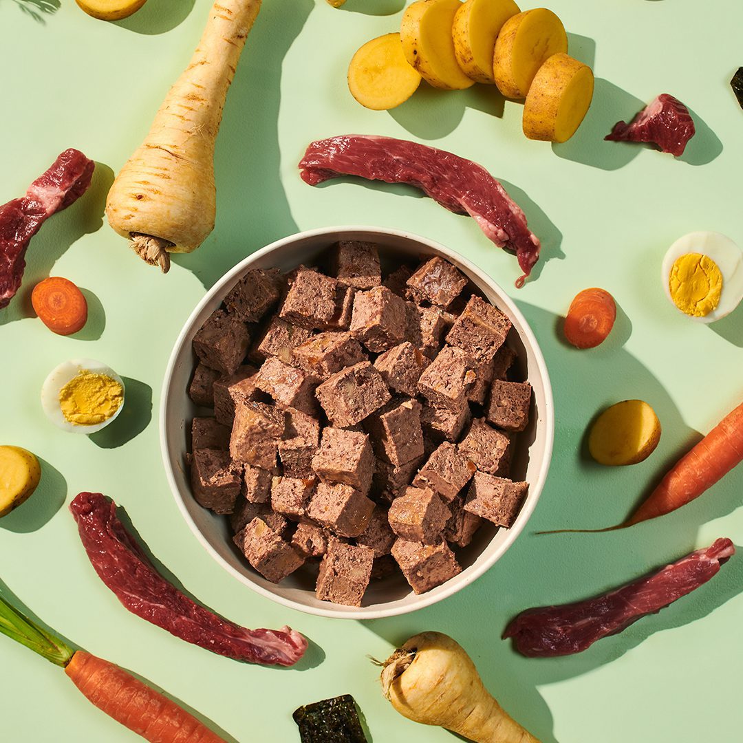 Lamb 60%,Carrot 3.5%, Potato 3.5%, Parsnip 3%, Dried Egg, Natural Ground Bone, Dried Seaweed