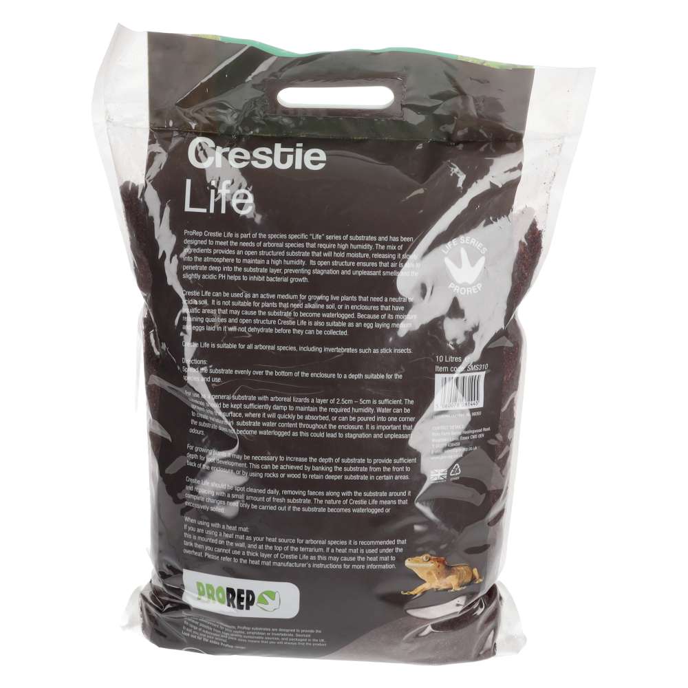 ProRep Crestie Life Substrate 10 Litre is part of the species-specific “Life” series, designed for geckos, small arboreal reptiles, and invertebrates such as stick insects. Its open-structured, moisture-retaining blend supports high humidity levels while preventing stagnation. Slightly acidic, it inhibits bacterial growth and is suitable as an egg-laying medium or as a substrate for plants that prefer neutral to acidic soil.