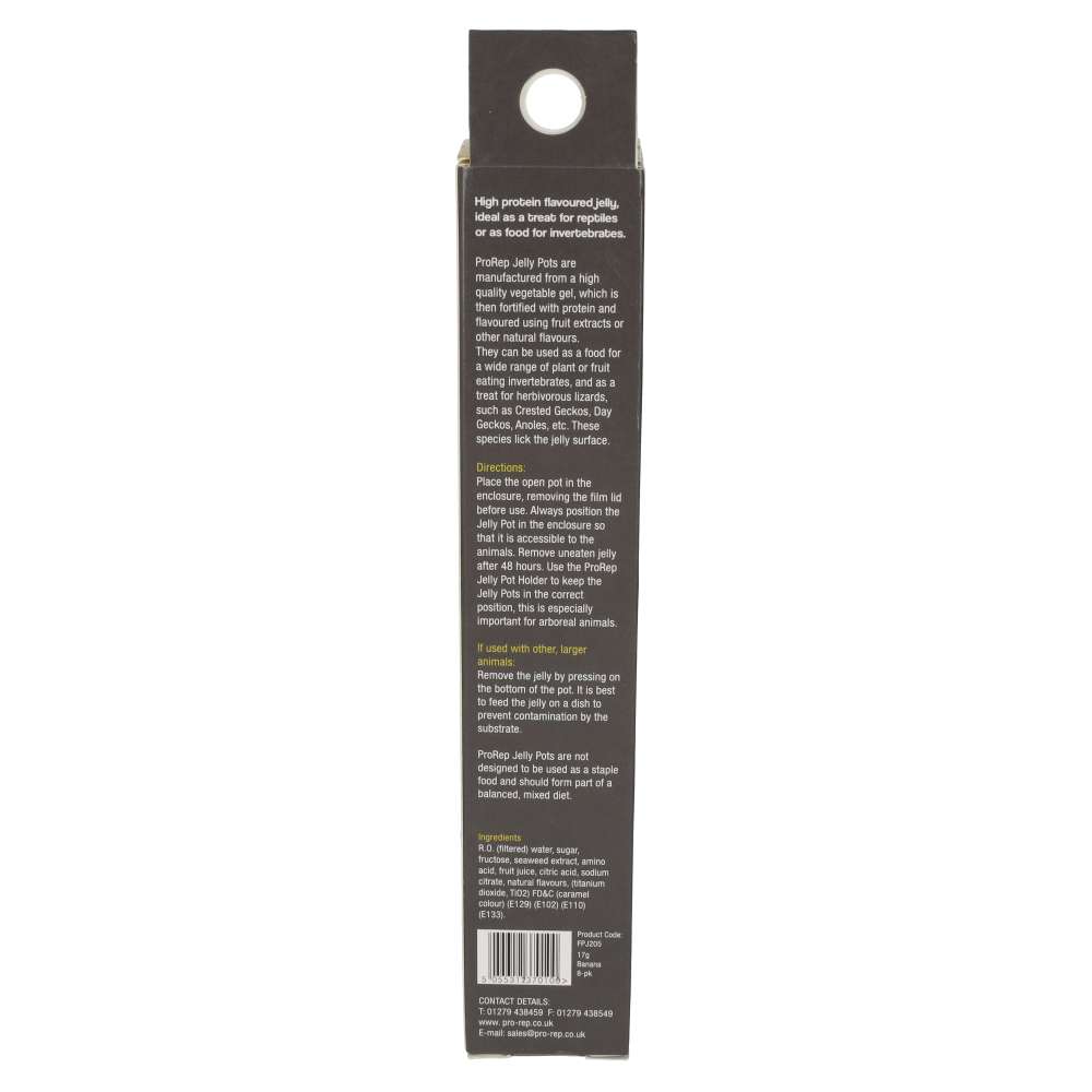 The ProRep Banana Jelly Pots are a convenient dietary supplement for fruit-eating reptiles such as crested geckos, day geckos, and other frugivorous species. They provide natural fruit sugars and hydration, mimicking the nutrients reptiles would find in their natural diet. The jelly pots are also suitable for feeder insects, improving their nutrition before offering them as live food.